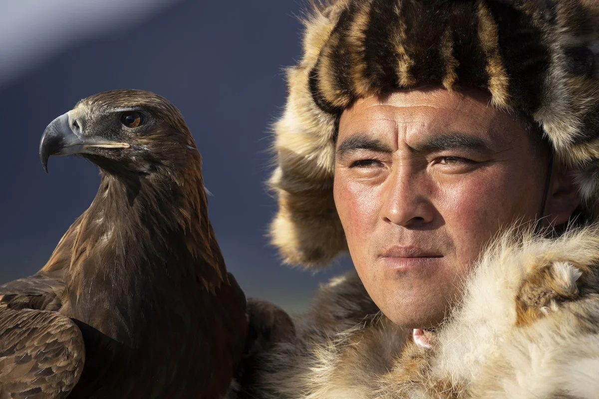 Last but not least, we have this tight portrait of eagle hunter Serik Jenisbek in the village of Sag Sai. We created this image at sunset in some phenomenal natural light. I must have shot thousands of images of Serik Jenisbek, both with his eagle and on his horse. This is one of my favourite shots of the lot because it has a candid feel and capturing the intimate connection between Jenisbek and his eagle was a very special moment.