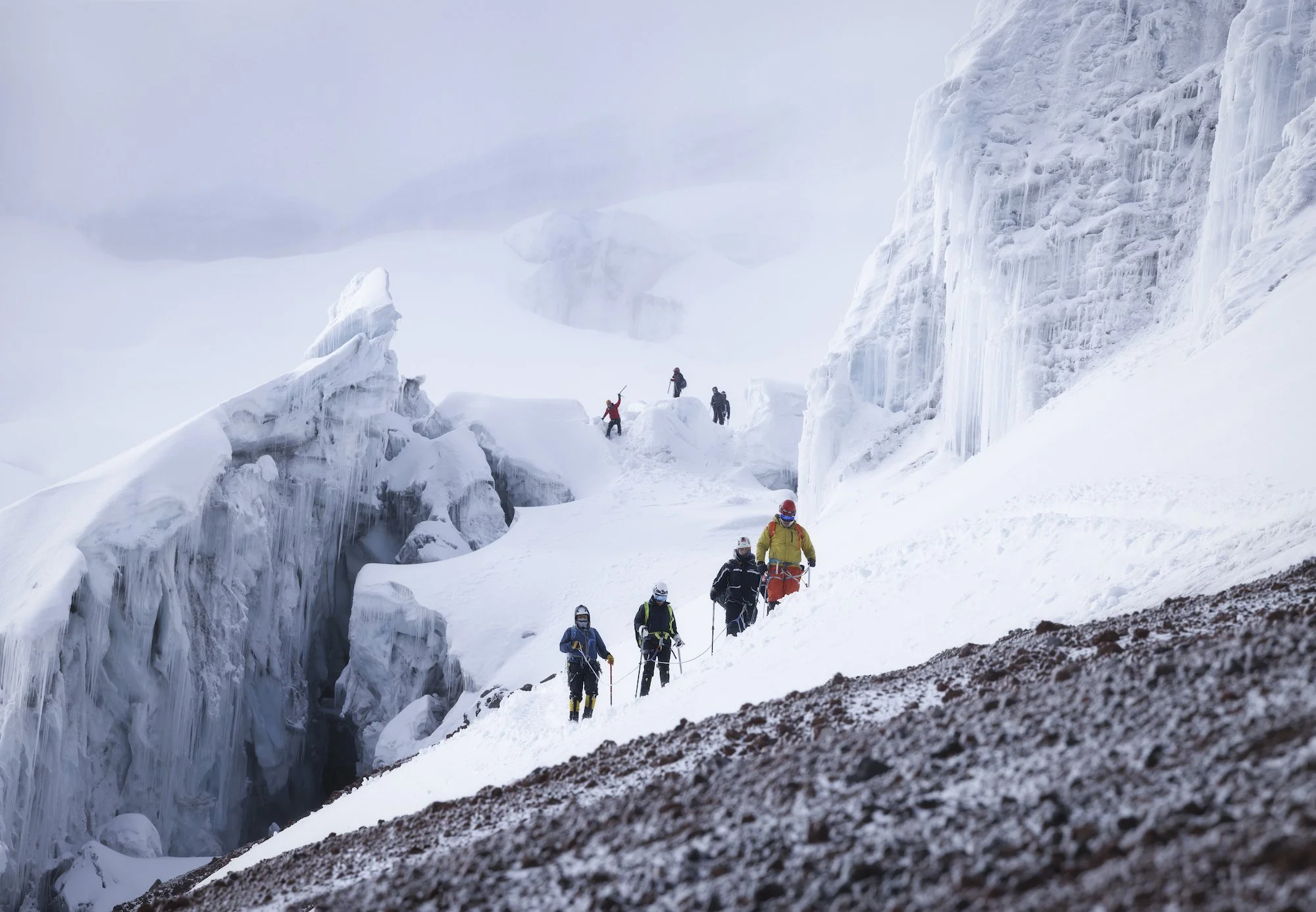 Weaving through seracs on our ascent of Cotopaxi. Photo by Paul Zizka.